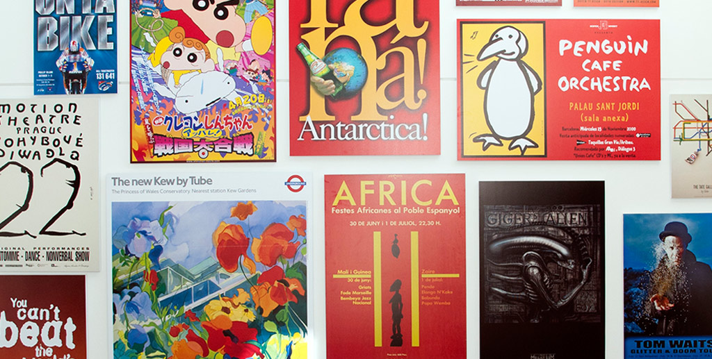 Recibimos el encargo de digitalizar y reproducir en impresión digital una selección de posters de diseño gráfico y visual con diferentes temáticas como carteles de cine, de conciertos, o contenidos publicitarios, con la finalidad de decorar con ellos una pared interior de una vivienda particular.